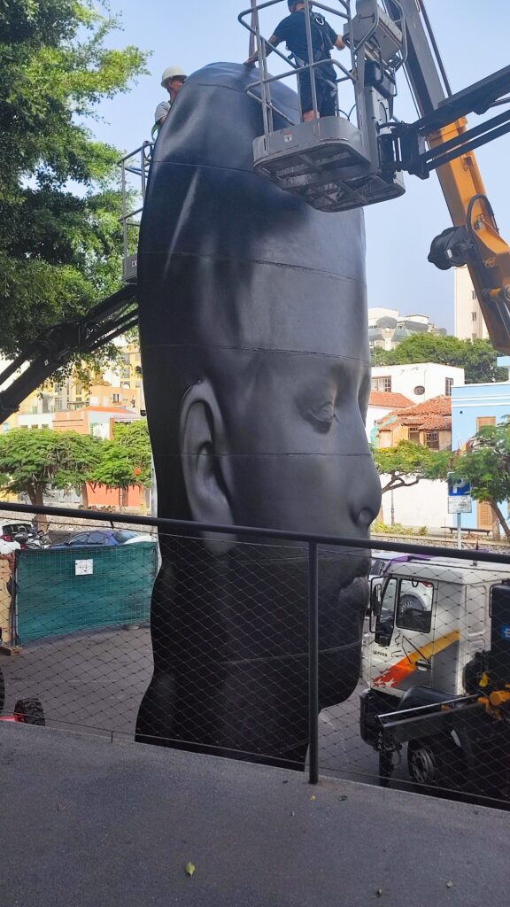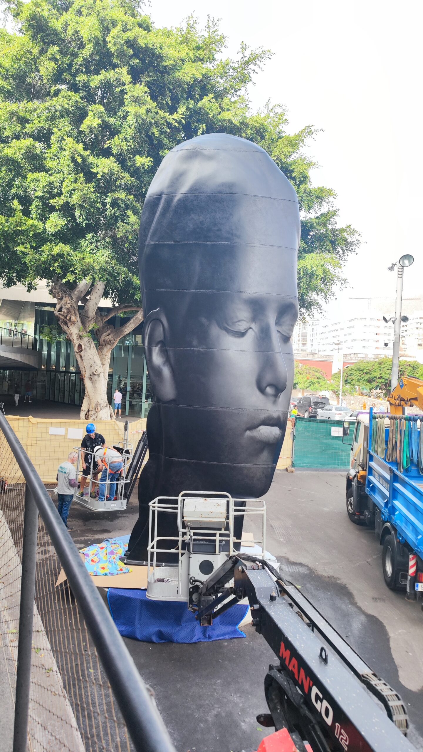 Carla parte del retrato que el artista realizó a una joven de 14 años, imagen que posteriormente transformó en su ordenador de “una forma aleatoria” y que en este caso “está alargada, comprimida, elaborada y con el cabello cambiado”. “Lo que sí que guardo es el alma de esta persona porque creo que estas obras con los ojos cerrados conservan algo que nos pertenece a todos. Cuando uno ve esta cabeza puede ser la de su hija, la de su amor o la de su amante y es todo es muy importante. No es la cabeza de Carla, es la cabeza de cualquiera de nosotros”, confesó el artista que concluyó diciendo que la escultura desde este momento ya no es suya, es de la ciudad y deseó que la cuiden y que la quieran tanto como él la quiere.